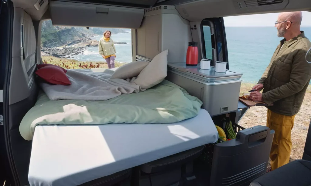 The Compact camper van is for those that don’t mind a smaller sized vehicle as long as it has all the necessary features needed to stay comfortable and warm. It sleeps 2 people in a 180×115 cm bed.